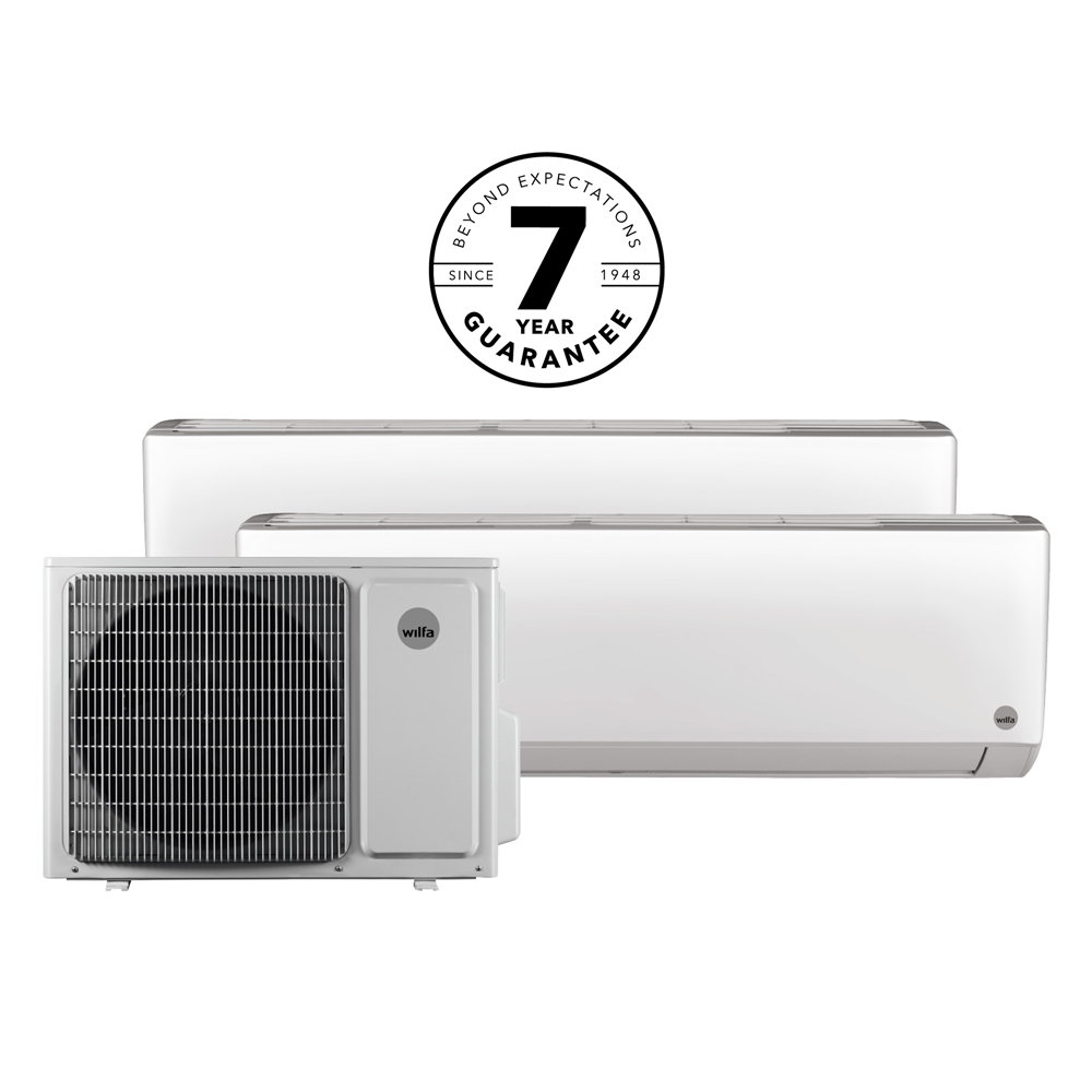 Duo Split är en luft-luftvärmepump med två inomhusdelar som ger jämn temperatur på två våningsplan eller större ytor.