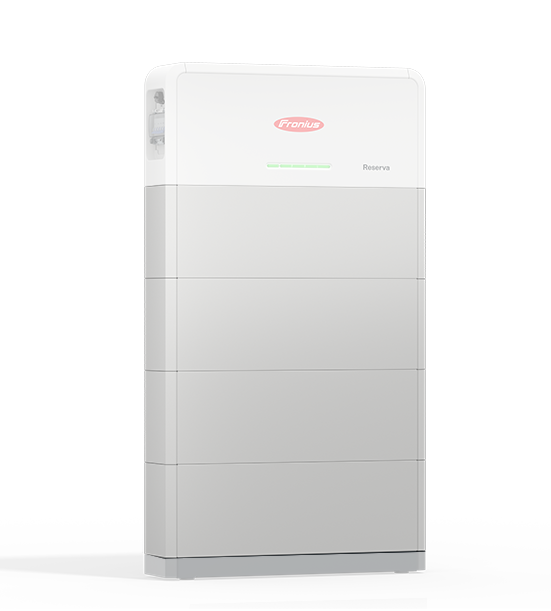 Fronius Reserva är ett högspänningsbatteri med DC-koppling för effektiv energiöverföring. Systemet byggs modulärt och anpassas efter behov – från 6,3 till 15,8 kWh med 2–5 moduler. För större lagringskapacitet kan du parallellkoppla upp till fyra torn och nå cirka 63 kWh (se datablad för dimensionering).