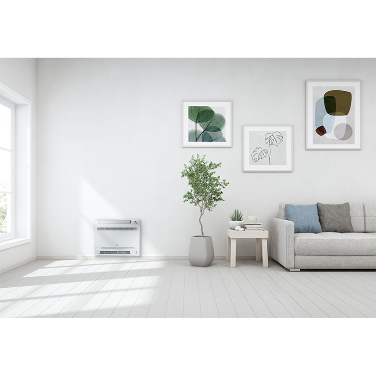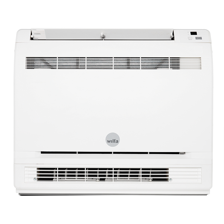 Trysil Floor Comfort är konstruerad för att stå på golvet och ger jämn värmefördelning via både topp- och bottenutblås. Den fungerar effektivt ner till −25 °C.